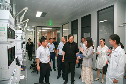 王国海委员一行先后参观了公司恒广路总部行政办公楼、研究院、D106及无菌制剂车间、仓储中心等,重点了解各实验室、车间的仪器设备配置和使用情况,以及公司现有平台的规划与布局。考察团一行对于公司厂区园林化、办公开放化、设备现代化、布局体系化的发展现状给与了充分肯定。