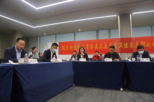 王水副主委、农共党医卫委主任刘云、农工党卫健委支部杨光主任等对省委医卫委及省卫健委支部的发展作重要指示并对公司表示感谢!双方就临床科研技术创新和企业发展、支部与企业共建等互换意见并作深入交流。