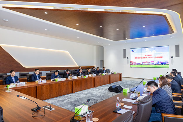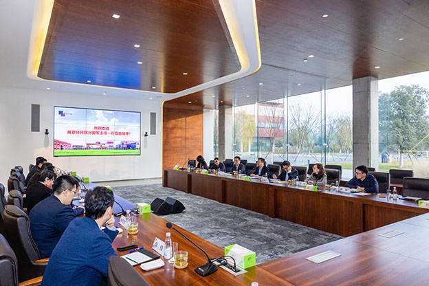 12月8日,南京经济技术开发区管委会主任孙爱军一行来到公司恒广路总部调研,董事长谢炳、总裁田舟山、董事谢炘、资深副总裁王宽起、副总裁张扬清在大厅迎接。