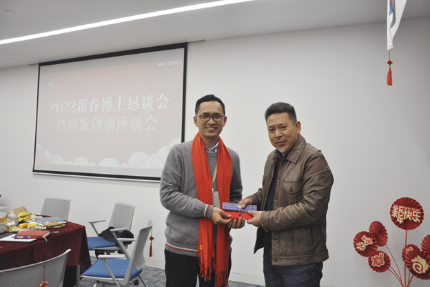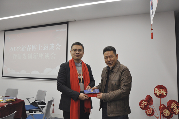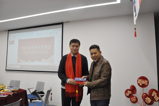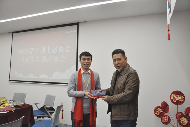 座谈会后,田舟山总裁还向博士们派发了“新年红包”并合影留念。