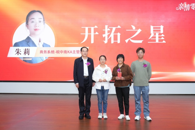 过去一年,各位营销同仁在行业快速变革和市场竞争极度激烈的情况下,坚定信心、勇毅前行,交出了一份满意的业绩答卷。在热烈的掌声中,先进员工与家人携手登台,从公司领导手中接过奖杯与奖金。