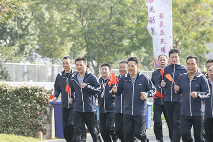 展现新我风采,拼搏赢战青春。深秋的南京正大天晴恒广路总部彩旗招展、流光溢彩,篮球场上人头攒动、欢声笑语不绝于耳,清晨就已集合在这里的他们整装以待,一场由公司工会主办、公司成立以来“规模最大、赛事最全、历时最长、规格最高”的秋季全民运动会即将在这里开始! 主席台上的露水还未散尽,欢鸣的鸟儿早已飞临枝头与我们一同期待。上午9时整,简单而隆重的开幕式正式开始,公司党委书记、总经理田舟山,执行副总经理张震乾,工会主席兼资深副总经理王宽起,副总经理张扬清,副总经理张翎,副总经理王红旗,以及各体系高管应邀出席仪式现场。 伴随着激情昂扬的序曲奏响,来自研发、生产、质量、职能体系的8个分会代表队陆续入场,步履铿锵、口号嘹亮,他们将代表公司全体3000余名员工接受检阅,走出凝聚力,释放精气神,唱响一支以“悦动天晴 健康同行”为主题的青春之歌。 开幕式上,由各分会推荐的15名职工带来“啦啦操”表演,男女搭配,体态优美,年轻、激情、活力,暖场效果十足。早在近两周之前,队员们就已经开始牺牲休息时间组织排练,只为台上三分钟为大家带来亮眼的风采。 田舟山总经理受邀致辞,他表示,本次运动会是加强企业文化建设、深化“党委领导、行政主导、工会搭台、各方协同、全员参与”职工文化建设工作格局的一项重点工作。全体职工要充分利用好这一平台,加强内部交流、培育内部共识、凝聚内在动能,在努力缔造经济发展新成果的同时,递交新时代精神文明建设的优异答卷,全力建设文化先进、科技领先、文明和谐的一流企业。 随后,运动员和裁判员代表陆续上台宣誓,作为赛事主体,他们将全力保障赛程序时推进、赛果公平公正。据悉,本次运动会赛程历时一周,设置“健康跑、篮球、羽毛球、乒乓球、拔河、三人两足、同舟共济”等多项赛事,下设若干小项,参赛人数预计将高达1500余人次,为历届之最。 奔跑吧,南京正大天晴人!作为本次开幕式的压轴戏,“全民健康跑”吸引了在恒广路总部办公的600余名员工参与,自篮球场旁出发,陆续穿越生活区、仓储中心、园区南广场、研发中心等主要建筑,至行政办公楼前结束,全程1.5公里,由出席仪式的高管团队领跑,跑出健康,跑出快乐,加速驶向未来! 自今日开始,运动会各项赛事即将陆续开赛,期待各位同仁能够在赛场上精诚合作、超越自我、赛出风格、赛出水平,徜徉大美金秋,收获喜人战果。(温志奇) |