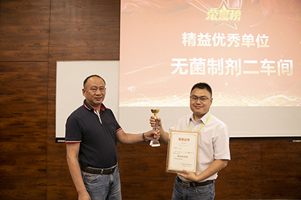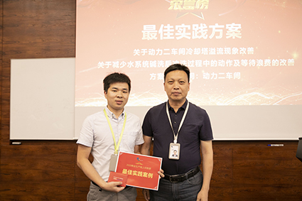 本次共表彰“精益优秀单位”1个、“最佳实践方案制定单位”1个、“优秀学习车间”1个、“优秀学员”3人,由到场领导为获奖个人及团队代表颁奖。除“精益优秀单位”外,其余均为“精益生产线上训练营”奖项。