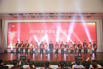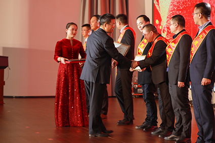 拉开新纪元的大幕,让高速行进的列车带上每一个为之奋斗过的人。接下来,是大会的重点主题“表彰”。这个环节,来自营销、非营销体系的先进集体代表、先进个人依次上台领奖,由公司总经理田舟山及诸位副总为他们颁奖。此时的音乐激昂且豪迈,而获奖人员内心澎湃的声音却更令人动容,他们鼓舞了自己,也将这份感情传递给在场的每一位同仁。
